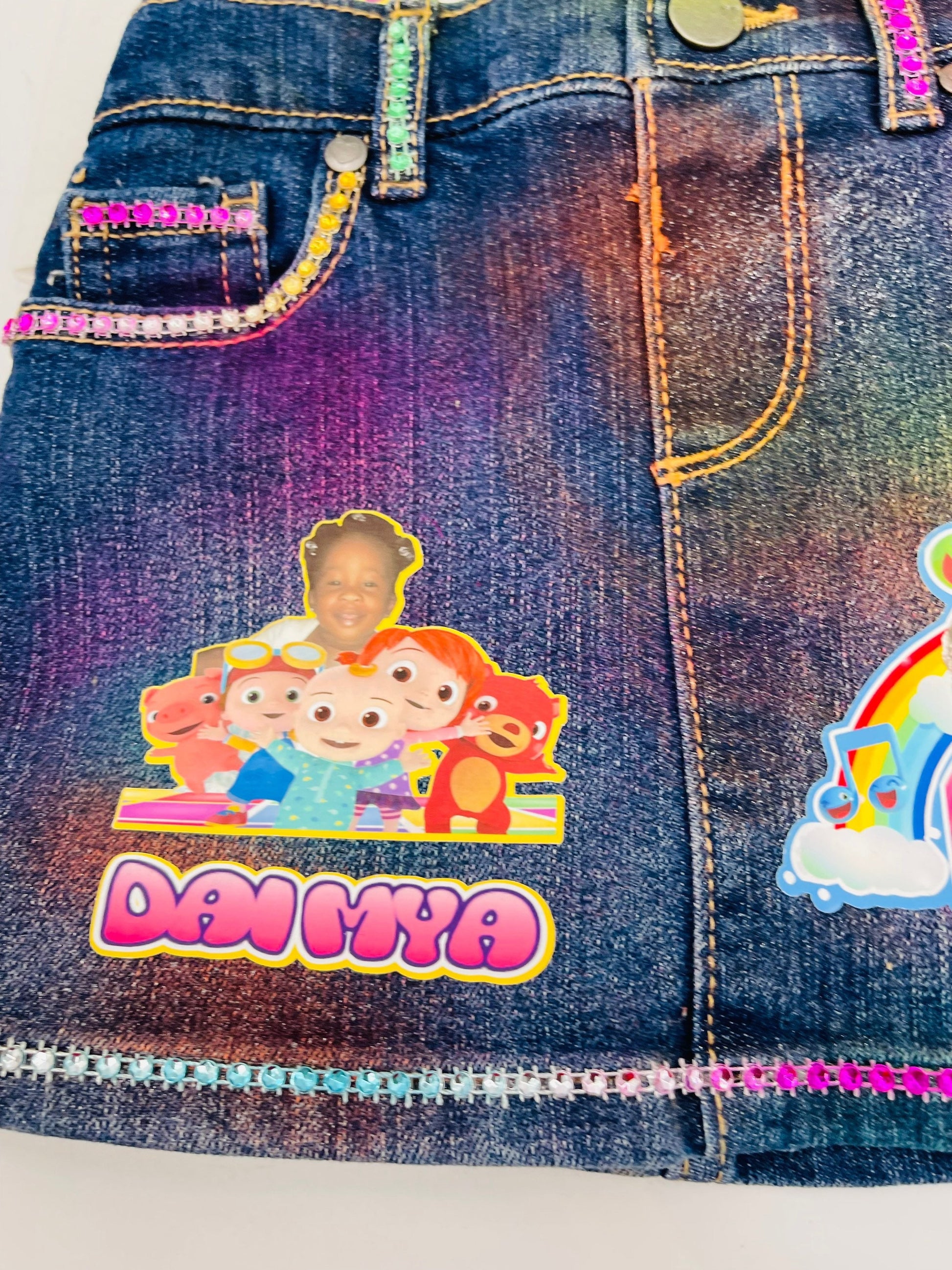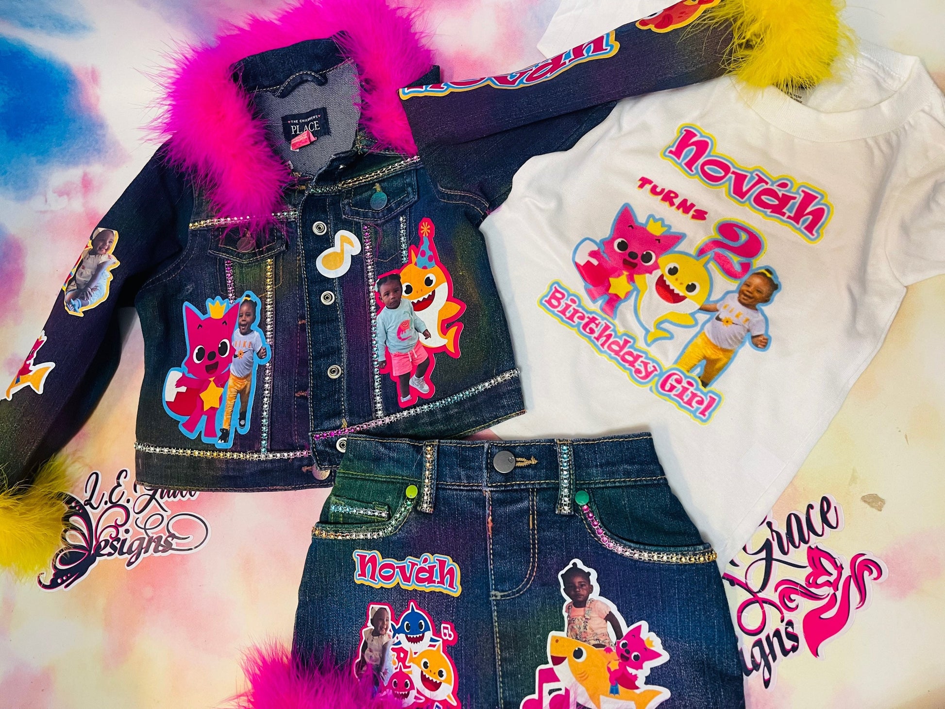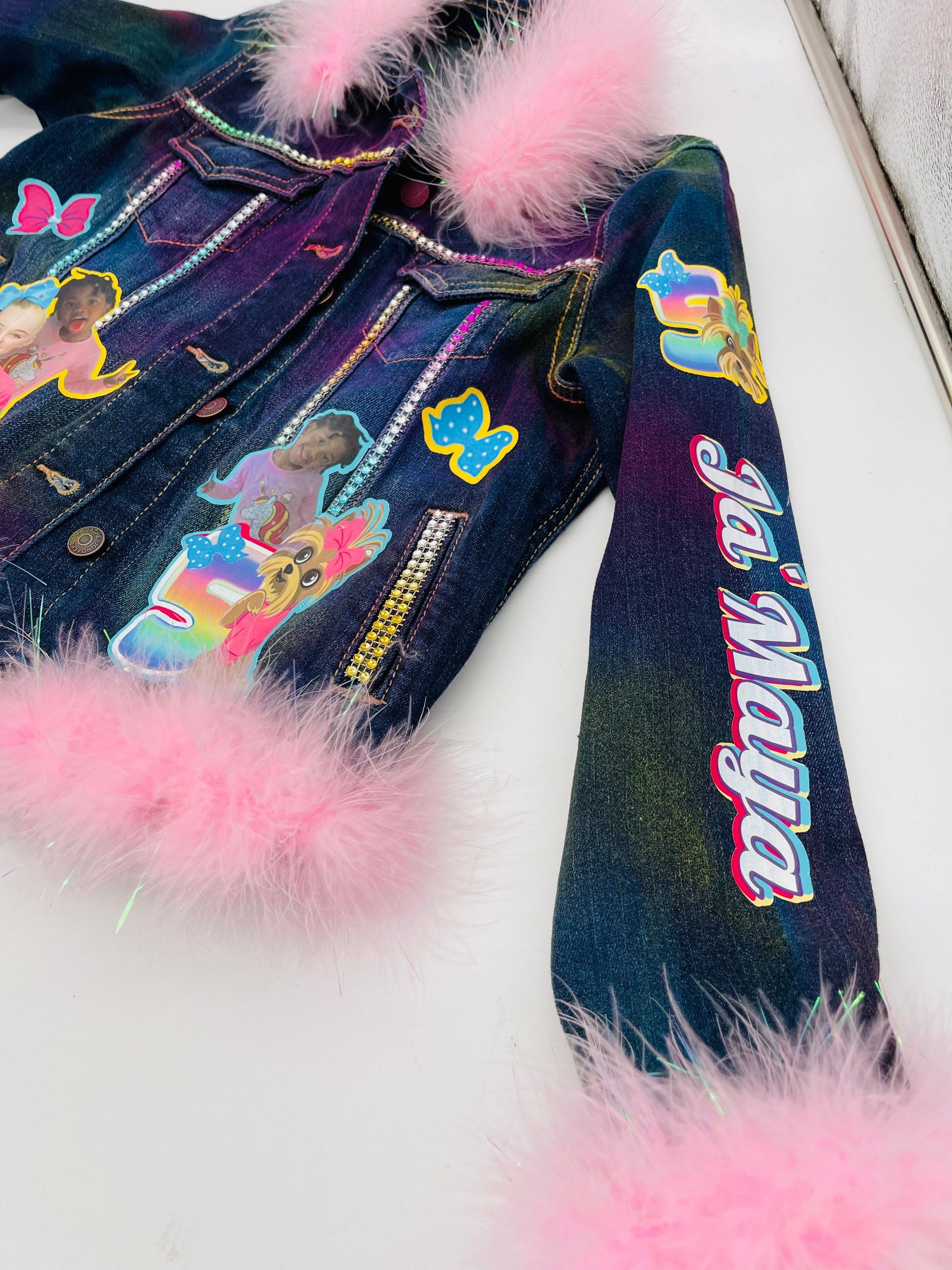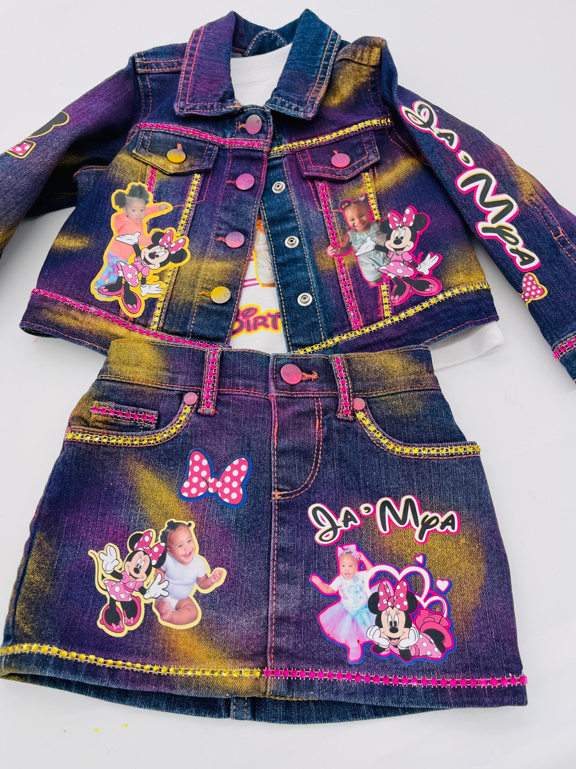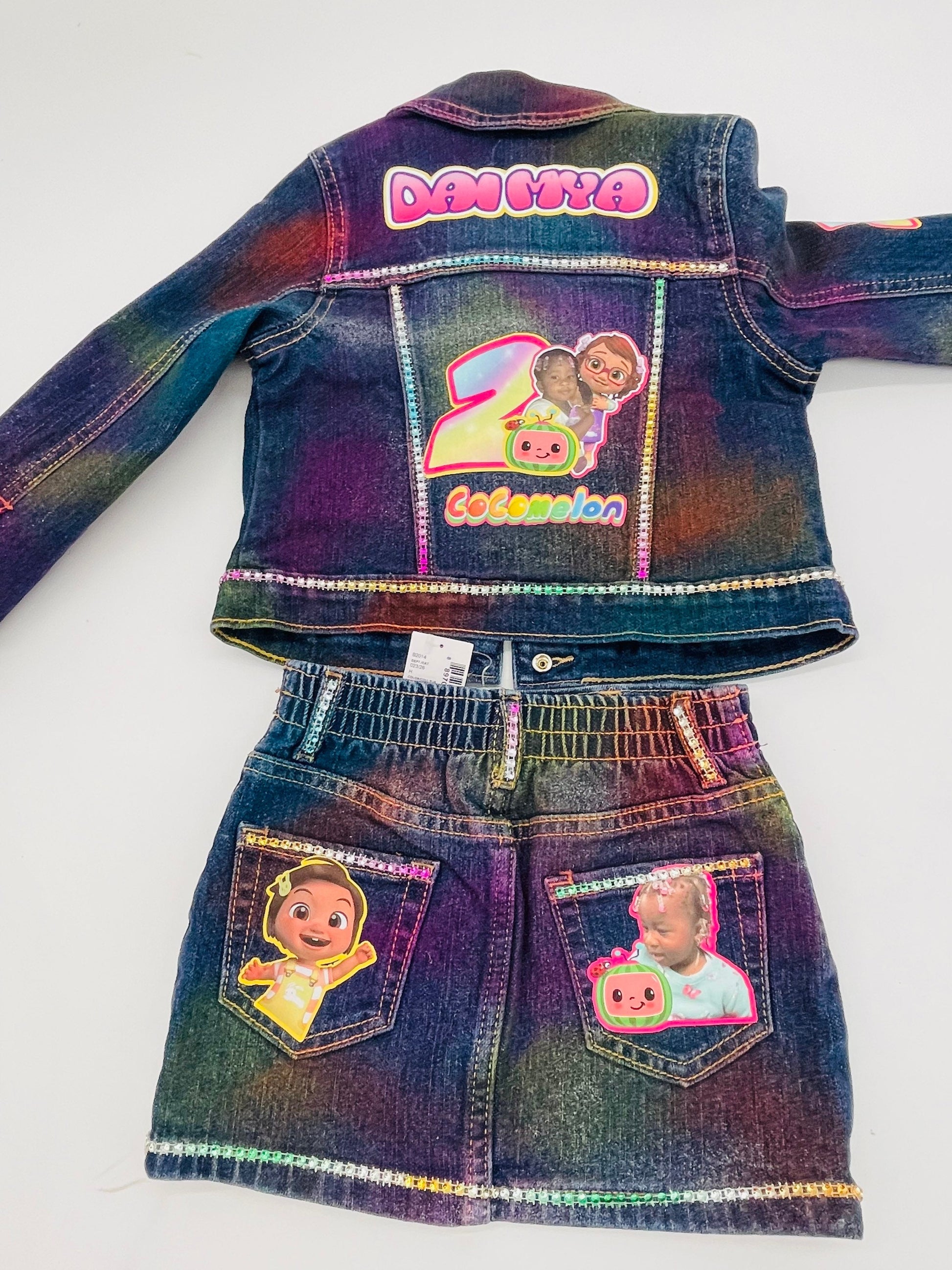 This set includes a denim Set including a shirt which will include your child’s name, age, and character. For girl sets you can add fur trim, etc. Please make sure to specify if you'd like fur / feather color.