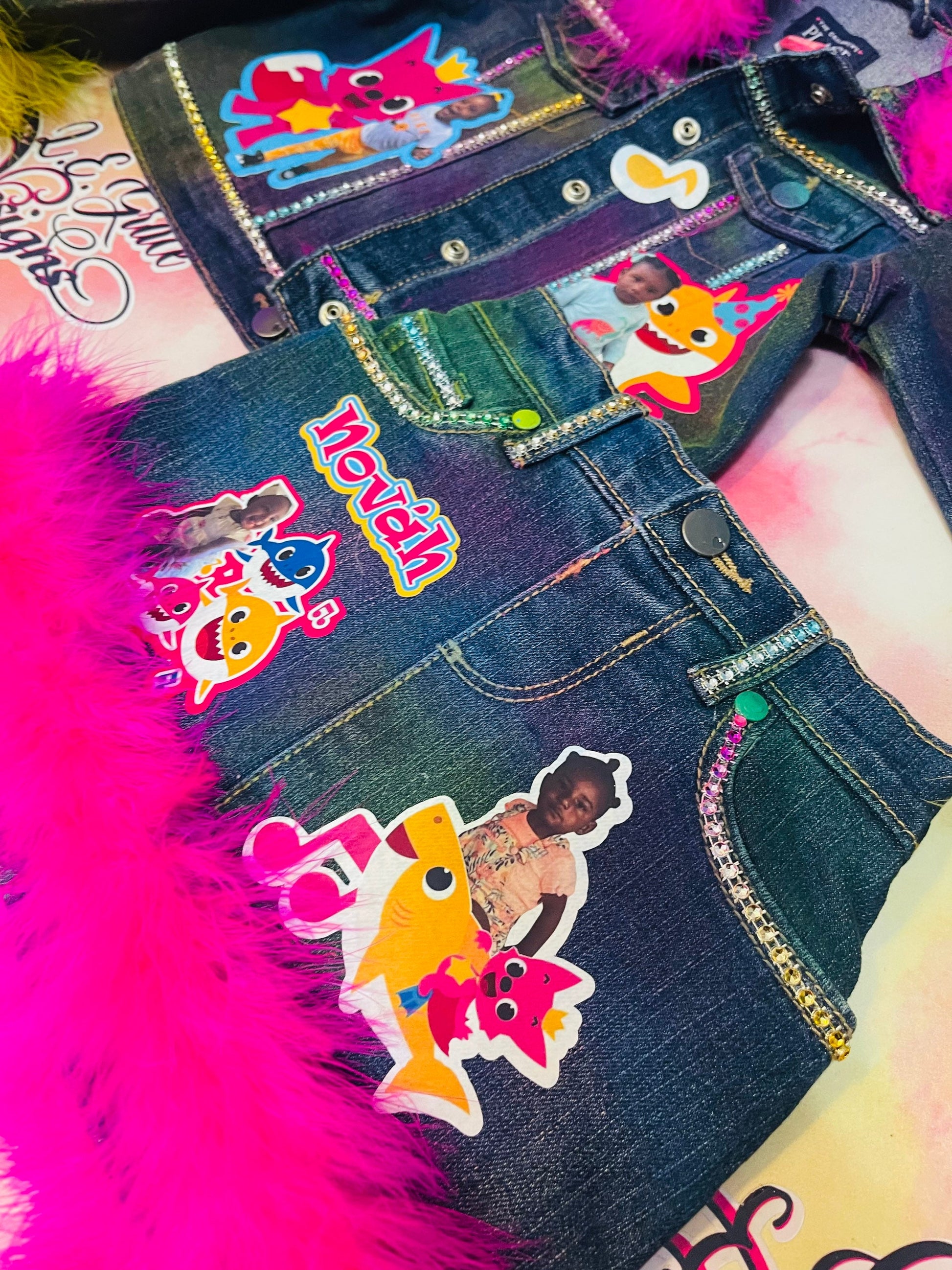 Please also note that the color of the outfit denim and sizes may vary. I purchase them from various kids stores and no pair will be the same as they are custom made.